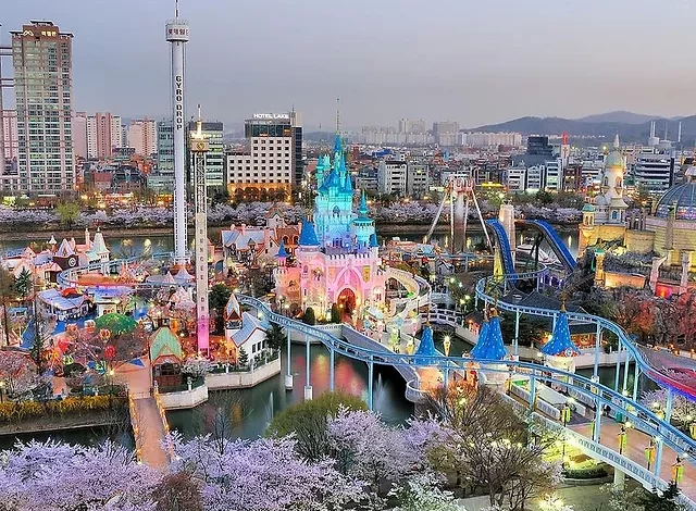 مدينة ترفيهية رائعة، وتعتبر أكبر مدينة ملاهي مغلقة في العالم، تعد أيضاً من أهم أماكن السياحة في كوريا الجنوبية حيث تُعتبر نقطة جذب رئيسية سواءً للكوريين أو للسياح.عالم لوت في حقيقة الأمر متنزه عملاق متعدد الأغراض، به مدن ترفيهية ومجمع تسوق ومرافق رياضية وفندق فاخر، وعروض متنوعة مثل عروض الليزر والاستعراضات، وحلبة تزلج على الجليد، وبحيرة.أحد أهم ما يميز عالم لوت أيضاً هي القرية الشعبية، التي يمكنك من خلالها التعرف على تاريخ كوريا الجنوبية الممتد لأكثر من 5000 عام، فهي عبارة عن قرى صغيرة ومجموعة من الزخارف الخاصة بالقصور والقلاع لحقبات مختلفة من التاريخ، وتم تزويدها بمؤثرات سمعية وبصرية لزيادة المتعة ولزيادة جذب انتباه السياح بأكبر شكل ممكن