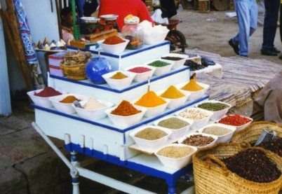 يبيع المتداولون مجموعةً واسعةً من السلع مثل العطور، والفول السوداني، ومسحوق الحناء، وزهور الكركديه المجففة، والتوابل، وأنواعٌ متعددةٌ من التمور التي تشتهر بها أسوان، والقمصان النوبية الشهيرة، والهدايا التذكارية المصنوعة على الطريقة المصرية.
