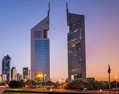 من معالم دبي والإمارات البارزة الموصي بزيارتها خلال السياحة في دبي.الأبراج عبارة عن برجين يتراوح ارتفاعهما بين 309-355 م أي ما بين 54-56 طابق على مساحة تزيد عن 42 فدان ويطلان على شارع الشيخ زايد الشهير، أحدهما برج يضم الآلاف من مكاتب العمل بالدولة والثاني هو فندق جميرا ويربط بينهما مجمع تسوق من طابقين يشتهر باسم بوليفارد ويُحيط بهما سلسلة من المُتنزهات والشلالات والبحيرات الاصطناعية.