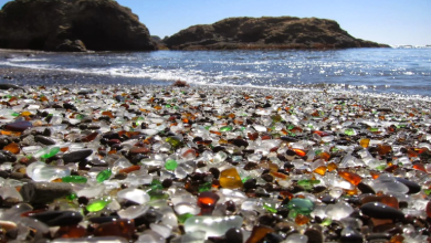 طبيعة لا يضاهيها أي جمال في العالم يمكنك الإستمتاع بشاطئ الزجاج الذي تكون من خلال عوامل النحت للصخور وتآكل النفايات،…